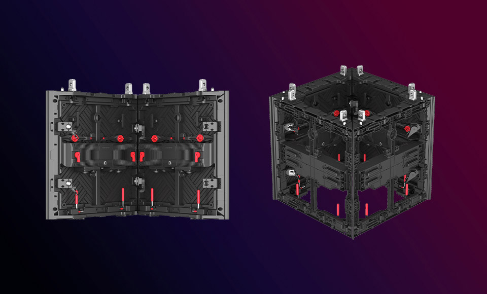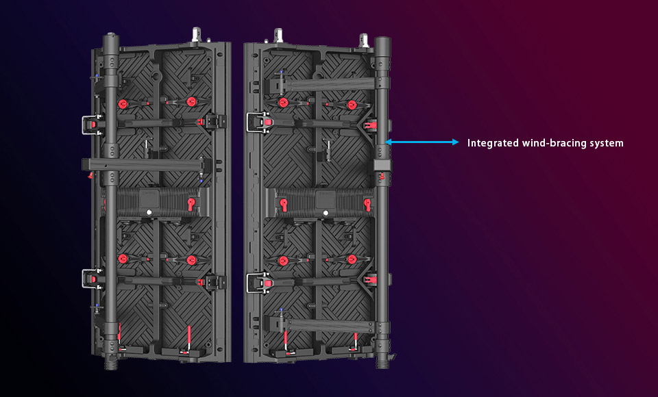 Equipped with integrated wind-bracing system(optional) for stable and secure structure, integrating screen fixation, force dispersion, and increasing installation stability functions, supporting stacking&hanging installation up to 20 meters.